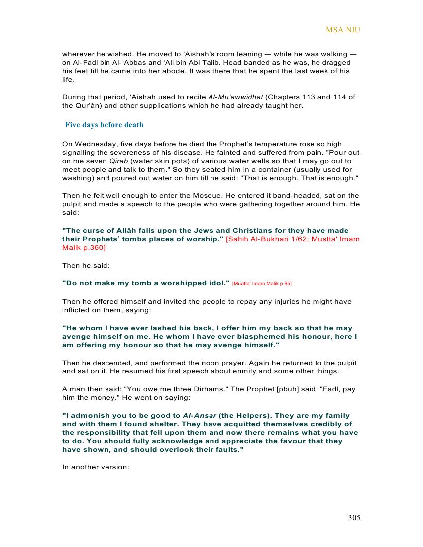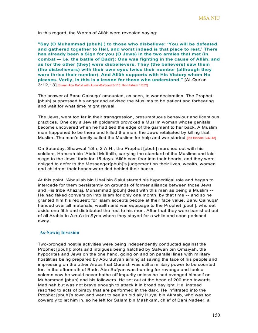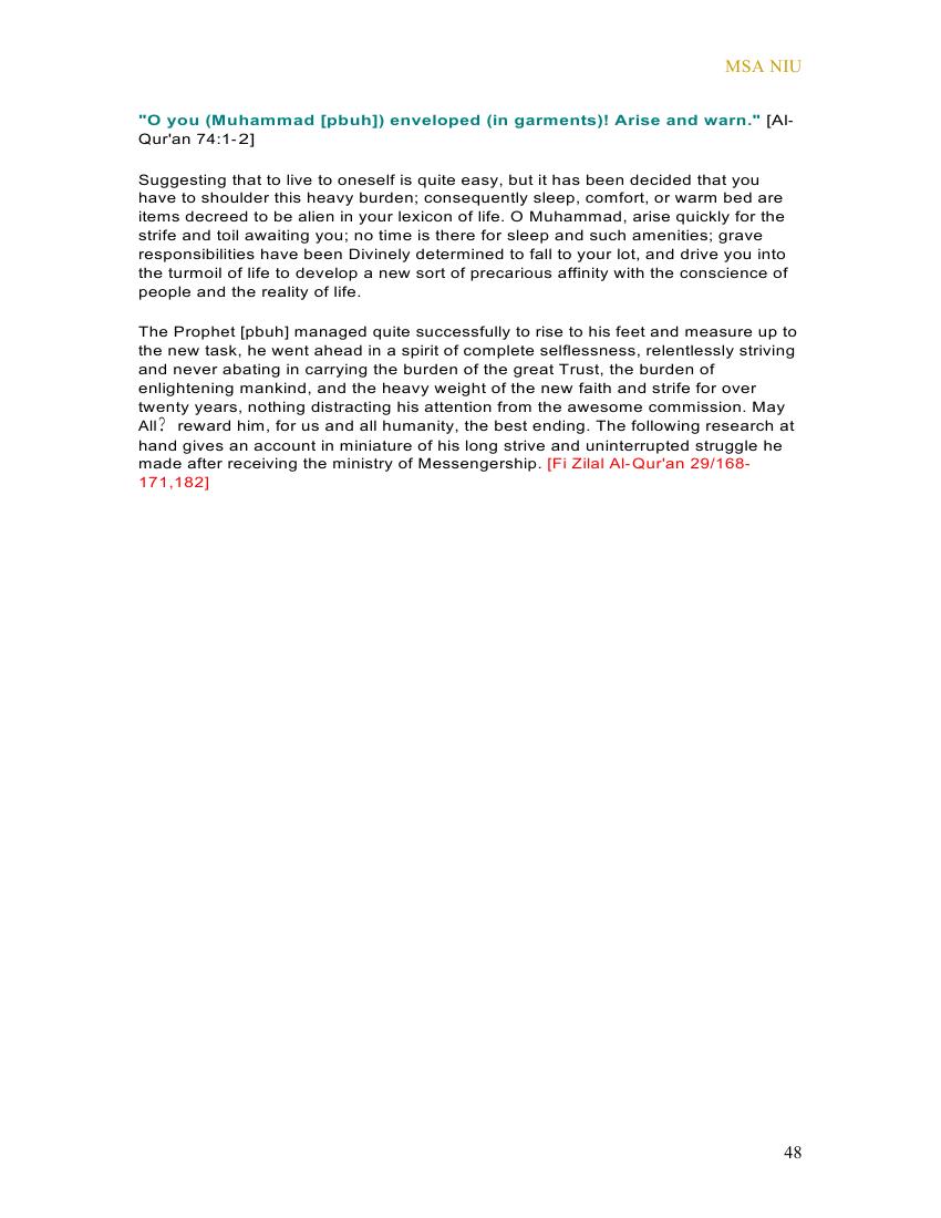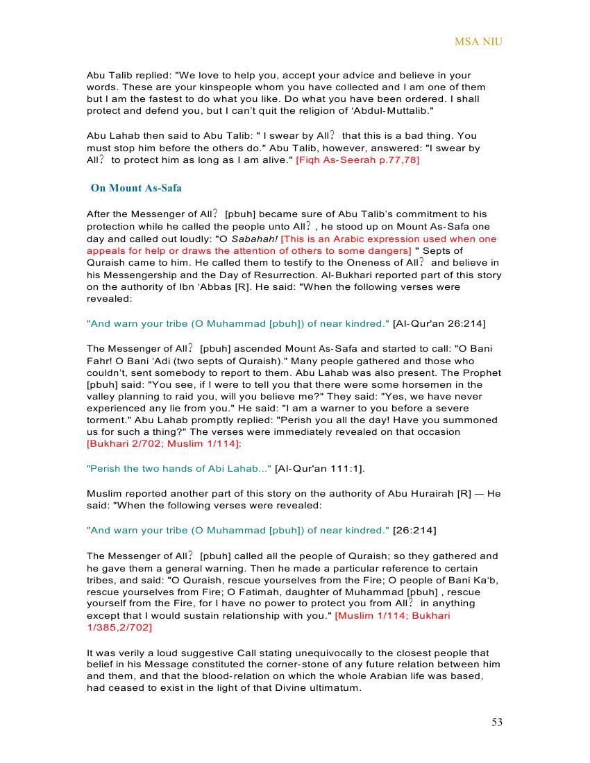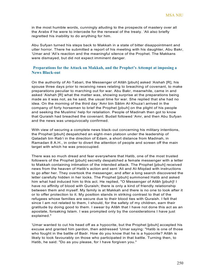 This was a brief study of the Prophet (s.a.w.s.)’s way of life. It must be stressed that we will never really understand the Sirah unless we study the Qur’an and Sunnah.
