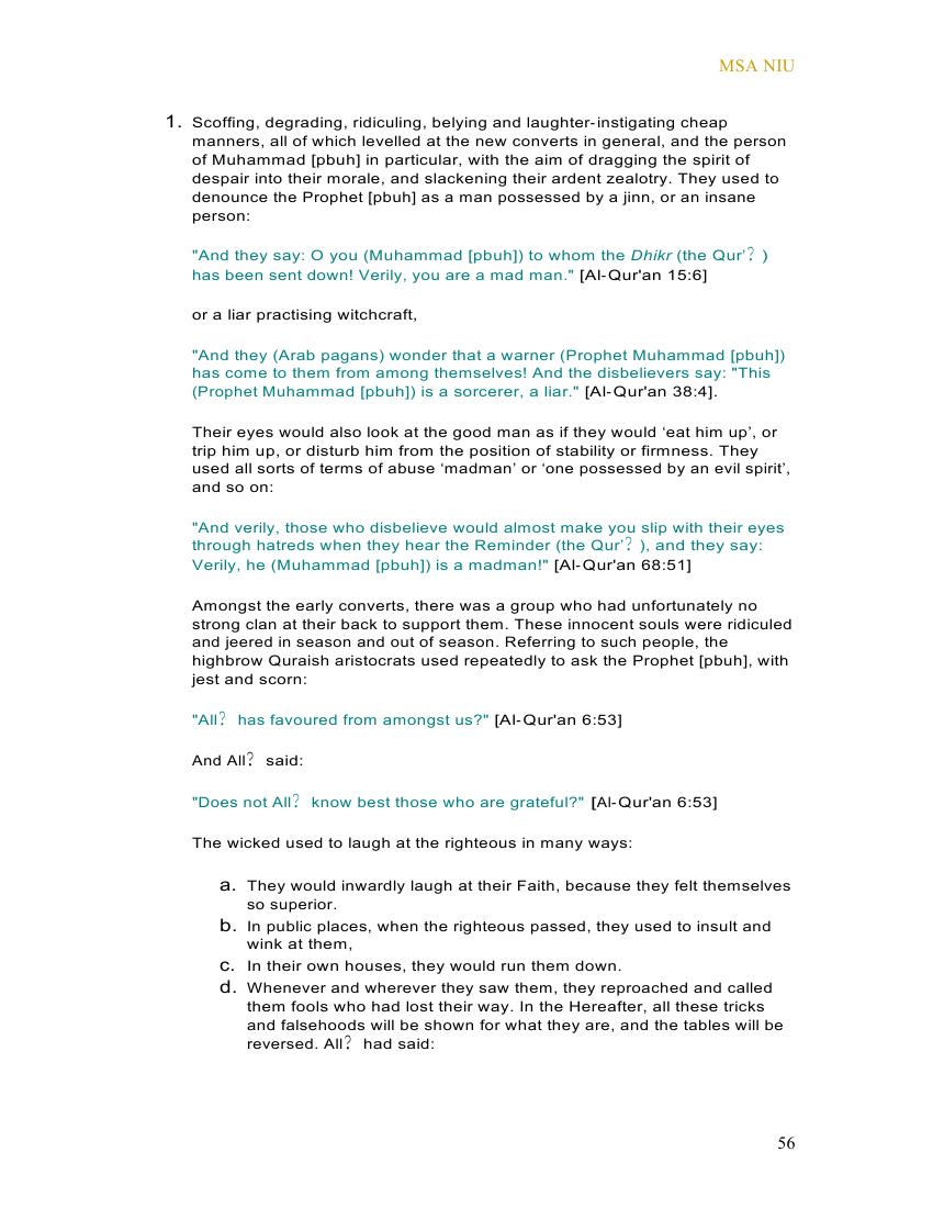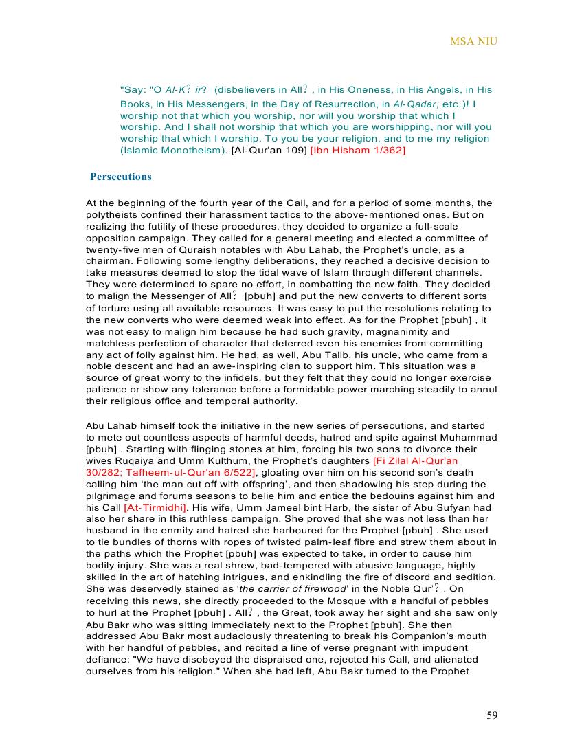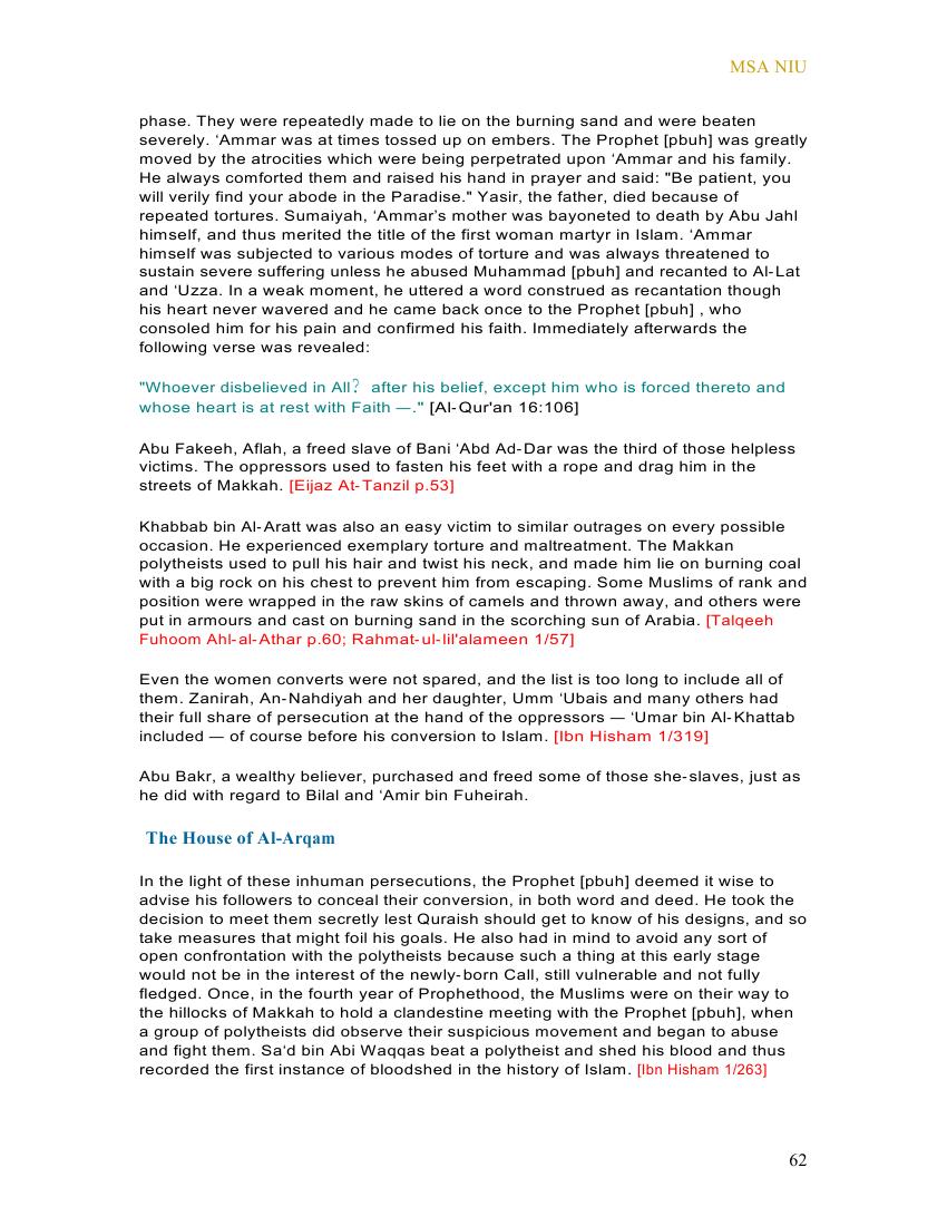 Quraysh spared no efforts to fight Islam and persecuted those who embraced it. The Prophet (s.a.w.s.) and his companions abused, ridiculed, humiliated, accused of indulging in magic, and the weak and oppressed believers were tortured until they disbelieved, died or swooned (as they had no clan to defend them).