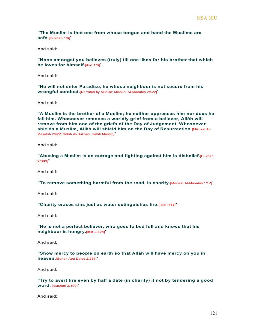 He never used obscene talk nor did he listen to it, nor did he listen to anything about anyone. Aisha (r.a.) said that “His speech was clear and distinct such that all those who listened to him understood him.” (Abu Dawud)