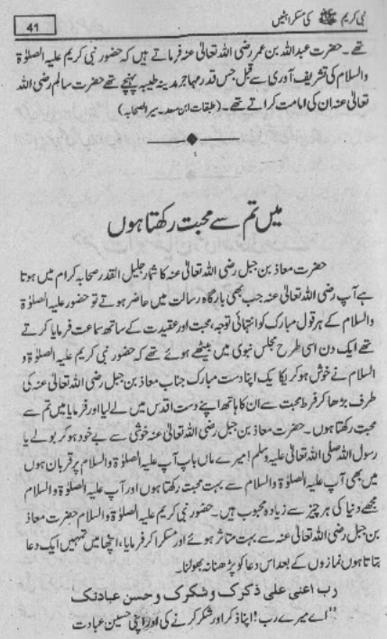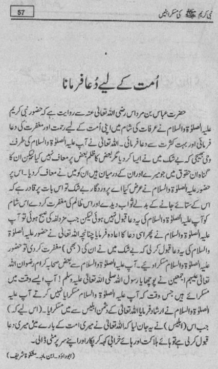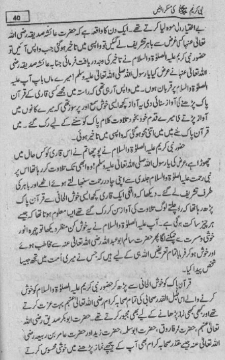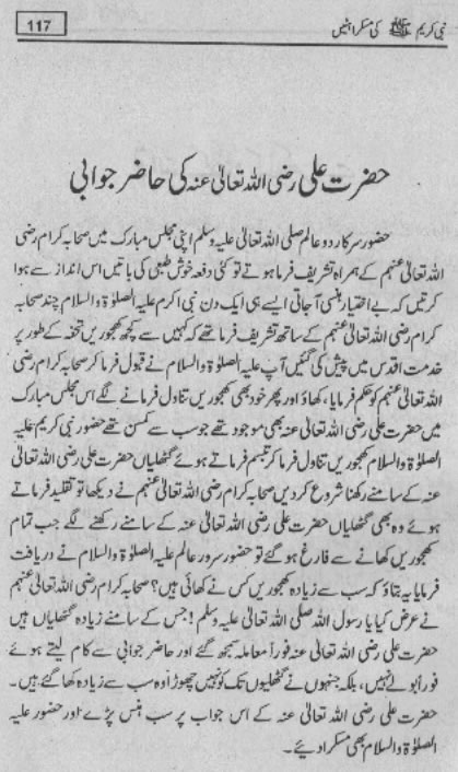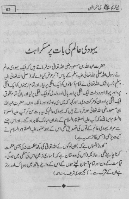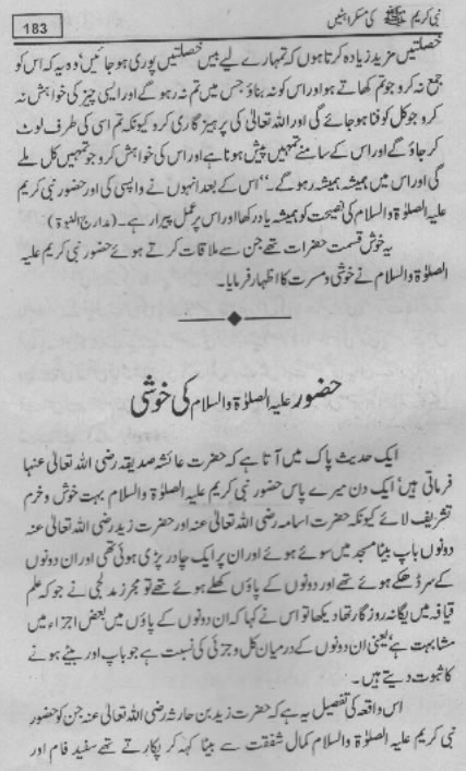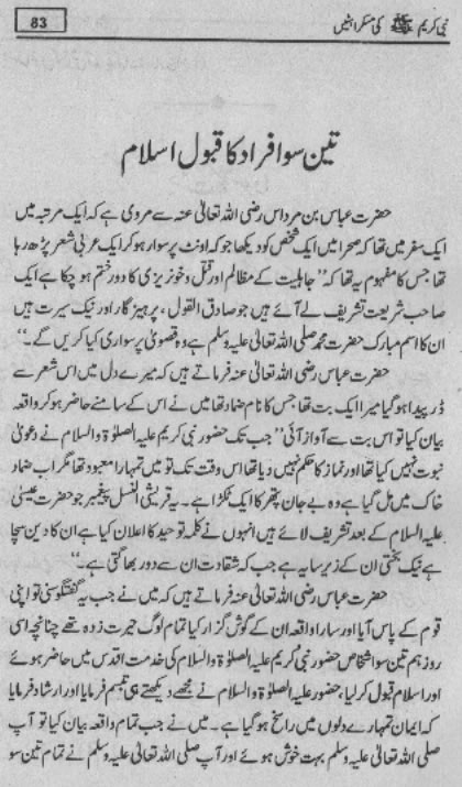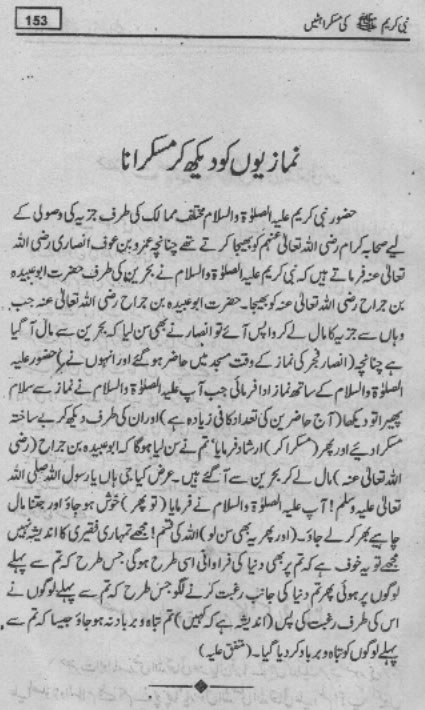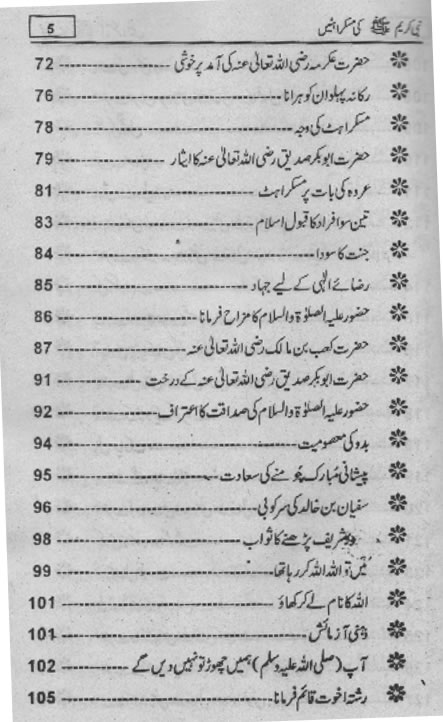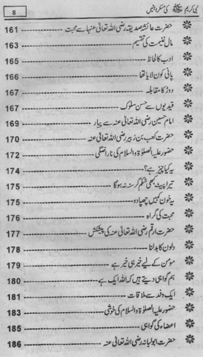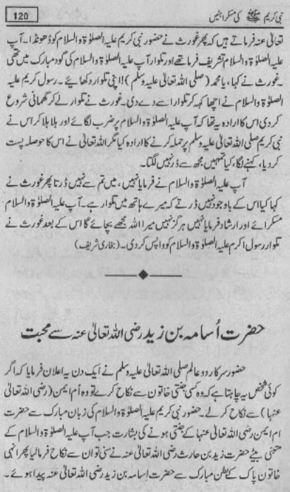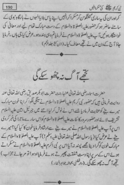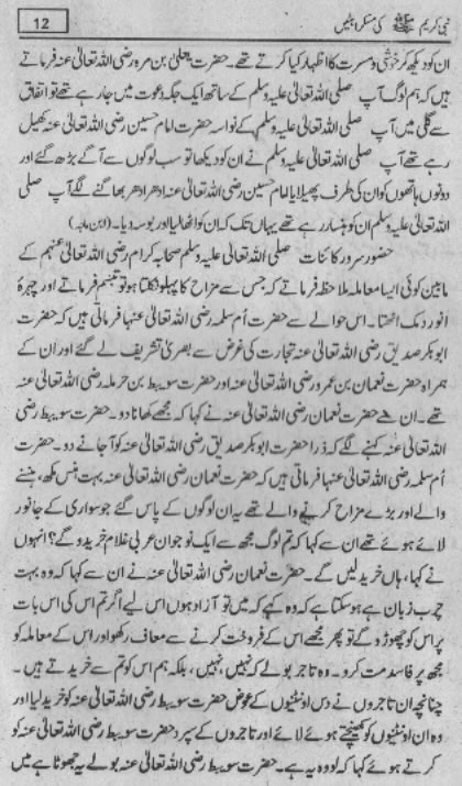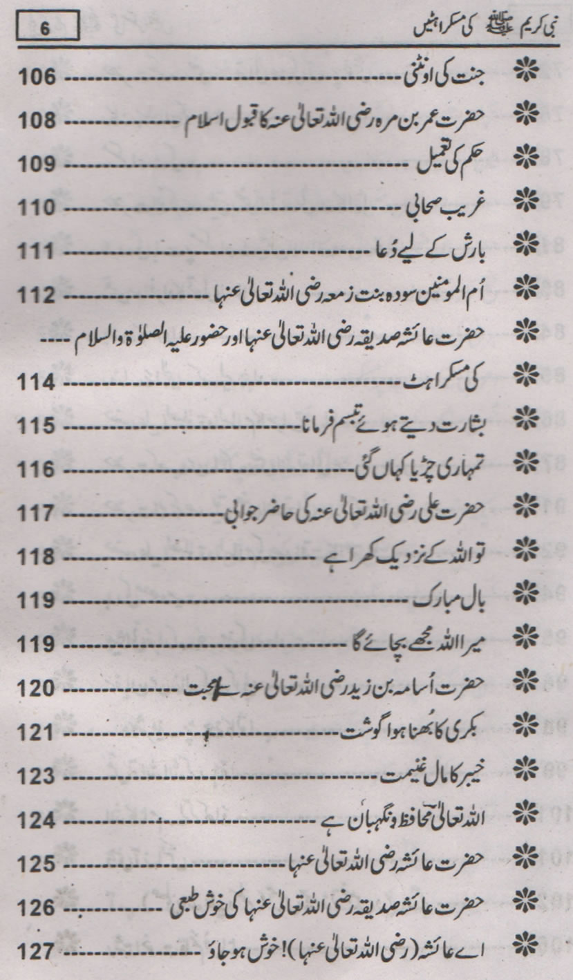 Smiles of Mohammad (pbuh)Here is a book outlining some of the lovely, smiling and beautiful moments of the life of Rasulullah (saw) Mohammad (pbuh). May Allah (swt) grant us the same sweet, smiling, and kind heart. Ameen! Click any of the following links to read the whole book in urdu. Viewing Images (Internet Explorer only): Please setup your browser to view the images 100%. Here is how you can do it in Internet Explorer Browser 5.5 and above; Click Tools --> Internet Options --> Advanced --> Multimedia --> Enable Automatic Image Resizing (Uncheck the box by clicking on it.)